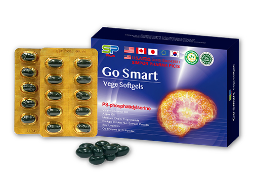 成份:中鏈三酸甘油脂、椰子油、藻油(含DHA 40.00mg)、木薯澱粉、銀杏果萃取粉、水、甘油、大豆卵磷脂(含磷脂醯絲胺酸5mg)、輔酵素Q10粉、二氧化鈦、食用黃色五號、食用藍色一號、食用紅色四十號